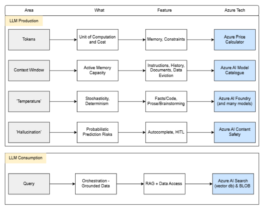The below outlines the 5 main pillars of using an AI LLM. The terminology is the basis of discussing ‘AI’ within an enterprise.